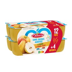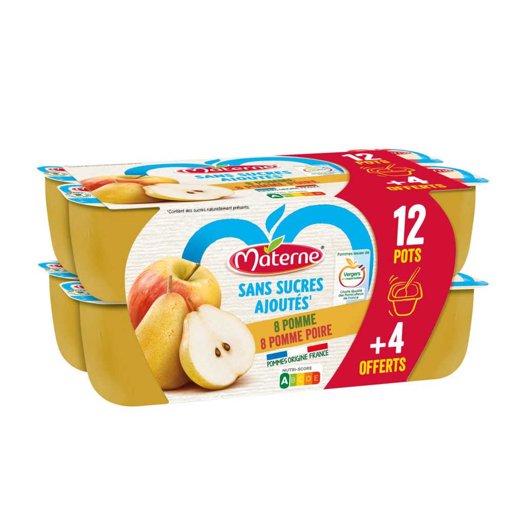 Purée de pomme sans sucres ajoutés (contient des sucres naturellement présents). Purée de pomme poire sans sucres ajoutés (contient des sucres naturellement présents).