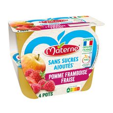 Pomme origine France (purée ; purée concentrée) 79,9% ; framboise 10,0% ; fraise 10,0% ; antioxydant : acide ascorbique.