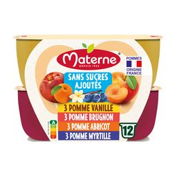 Chez Materne®, nous mettons tout notre cœur pour vous proposer le meilleur des fruits. C'est la raison pour laquelle nous vous proposons ces recettes sans sucres ajoutés (contient les sucres naturellement présents dans les fruits). Ces produits sont élaborés avec des pommes, des brugnons et des abricots origine France, les pommes étant en plus issues de vergers écoresponsables !