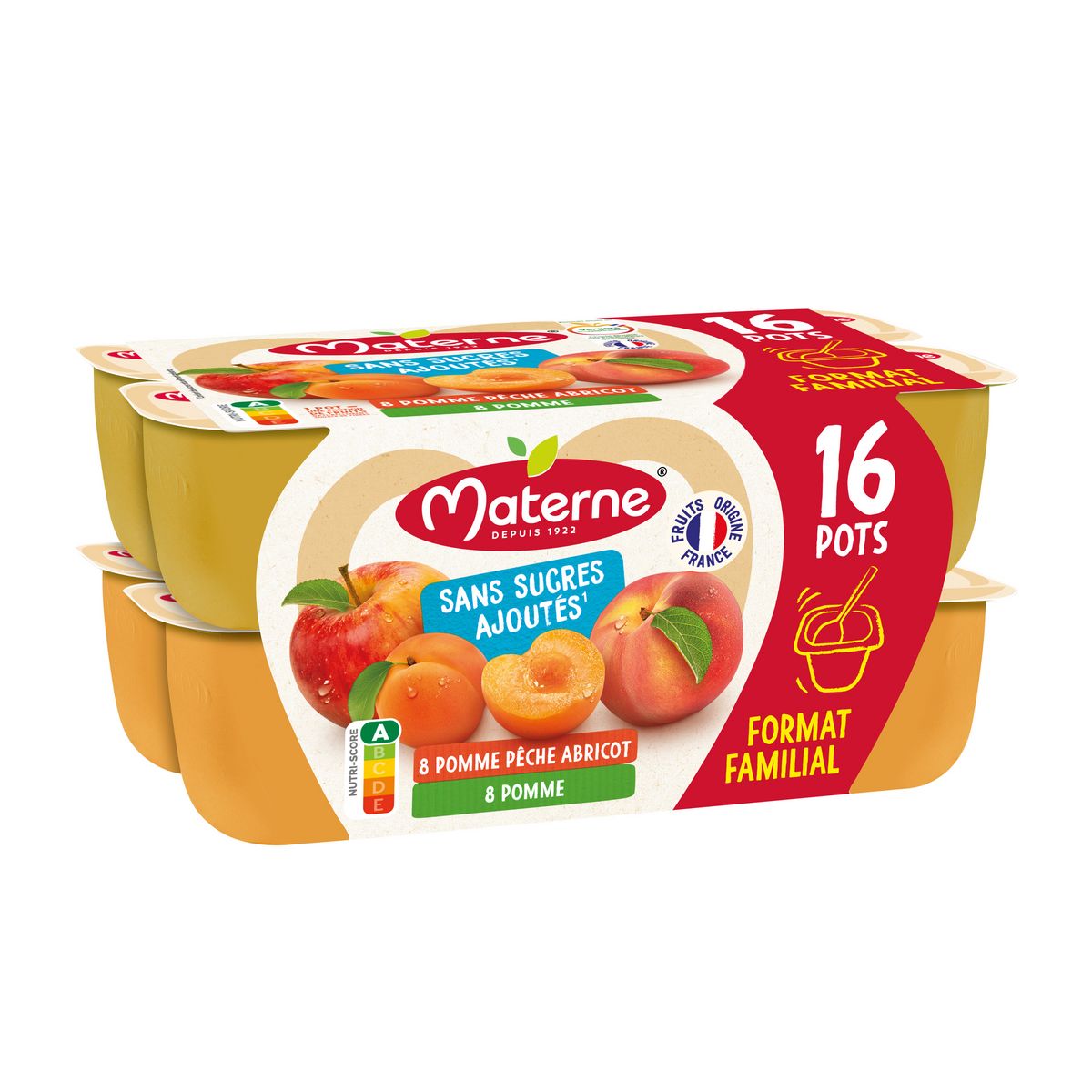 0% de sucres ajoutés*, 100% plaisir ! Parce que la santé passe aussi par l'alimentation, Materne® s'engage à vous offrir le meilleur des fruits. C'est la raison pour laquelle nous vous proposons cette recette sans sucres ajoutés* (*contient des sucres naturellement présents). Ce produit est élaboré avec des pommes françaises et issues de vergers écoresponsables !