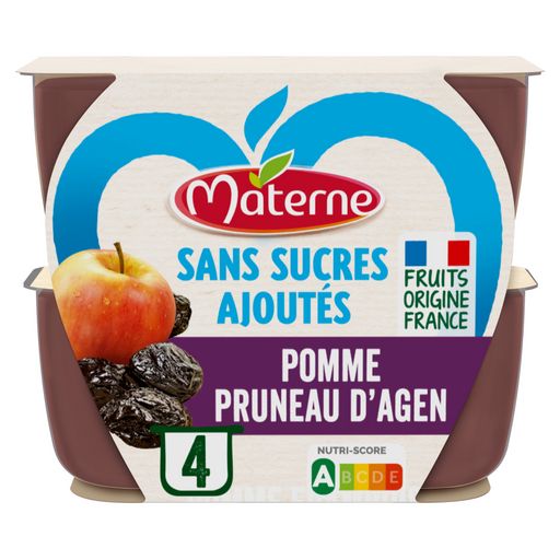Pomme origine France 63,7% ; purée de pruneau origine France à base de pruneau d'Agen IGP (pruneau d'Agen IGP 22,0% ; eau) ; jus de citron concentré (si nécessaire pour réguler l'acidité) ; antioxydant : acide ascorbique.