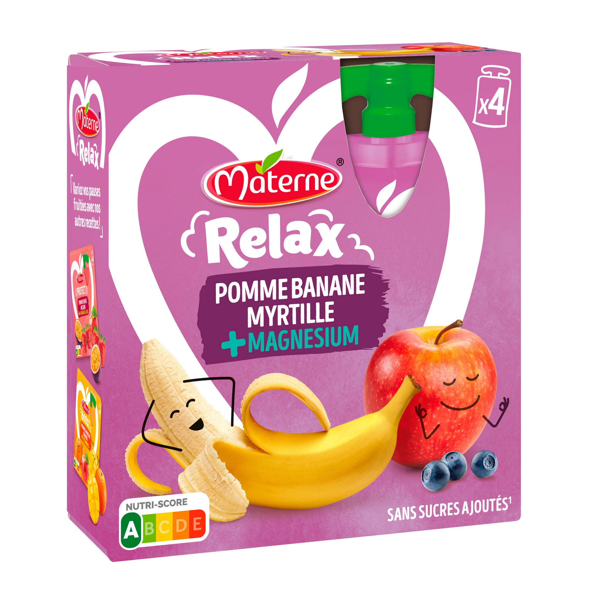 Découvrez notre nouvelle gamme de compote en gourde Materne, pensée pour les adultes, enrichie en vitamines et/ou minéraux, qui vous accompagnera au quotidien en s'adaptant à votre besoin du moment : plutôt Boost, Relax ou Protect ? Des recettes originales et intense en goût, avec de délicieux mélanges de fruits associés à des vitamines et/ou minéraux pour contribuer à votre bien-être. Découvrez Relax, une recette savoureuse pour se sentir ben au quotidien : - Source de magnésium - Sans Sucres Ajoutés* - Nutri-Score A * Contient des sucres naturellement présents