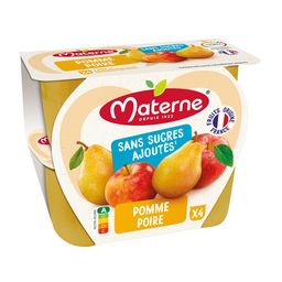 0% de sucres ajoutés*, 100% plaisir ! Parce que la santé passe aussi par l'alimentation, Materne® s'engage à vous offrir le meilleur des fruits. C'est la raison pour laquelle nous vous proposons cette recette sans sucres ajoutés* (*contient des sucres naturellement présents). Ce produit est élaboré avec des pommes françaises et issues de vergers écoresponsables !
