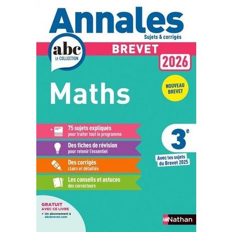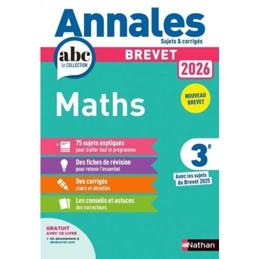 Les Annales ABC du Brevet pour préparer l'épreuve de Maths du Brevet 2026 Sujets et corrigés - 75 sujets expliqués pour traiter tout le programme du Brevet - Des corrigés clairs et détaillés - Des fiches de révisions pour retenir l'essentiel - Les conseils et astuces des correcteurs Annales ABC du Brevet 2026 Maths - Corrigé Conforme aux programmes du Brevet Des sujets pour préparer le Brevet 2026 - Les sujets complets de l'épreuve écrite du Brevet 2025 pour s'entraîner dans les conditions de l'examen. - Des sujets altés par thèmes pour réviser tout le programme. - Un minutage pour se mettre dans les conditions de l'épreuve. - Tous les corrigés détaillés avec des rubriques d'aide . La méthode gagnante pour préparer l'épreuve - L'épreuve expliquée et les critères d'évaluation. - Les conseils pratiques des correcteurs. La synthèse des cours - Des fiches de révisions pour retenir les points-clés . - Les formules et définitions à mémoriser. ++ Des activités calcul mental ! - 100 exercices pour progresser en calcul mental.