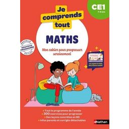 La méthode complète pour exceller en mathématiques au CE1 ! Un cahier qui combine 300 exercices, BD pédagogiques et vidéos pour maîtriser nombres, calculs et géométrie. Accompagnez votre enfant vers la réussite en mathématiques : - 300 exercices progressifs couvrant tout le programme : nombres, calculs, problèmes/gestion de données, grandeurs et mesures, espace et géométrie - Leçons expliquées en BD pour rendre l'apprentissage concret et motivant - Défis de calcul mental pour plus de rapidité - Des vidéos des leçons accessibles via QR codes proposées par le Réseau Canopé - Mémos synthétiques pour retenir l'essentiel - Les corrigés détachables de tous les exercices - Tables d'addition et de multiplication incluses - Tableau des figures géométriques - Guide parents avec explications sur le programme scolaire et les méthodes d'apprentissage. Conçu par une équipe d'enseignants spécialement pour le travail à la maison !