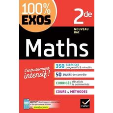 Plus de 300 exercices corrigés en Maths 2de, conformes au nouveau programme du lycée. Pour s'entraîner et devenir très bon ! - Vous êtes en Seconde et vous souhaitez réussir en Maths ? Sur chaque thème du nouveau programme, 100 % exos Maths 2de met à votre disposition toutes les ressources pour un entraînement sur mesure : - les rappels de cours et de méthode indispensables, - une batterie d'exercices progressifs et minutés, - des devoirs sur table pour réviser et gagner des points, - des exercices d'approfondissement pour renforcer votre niveau, - des corrigés détaillés et commentés, pour assimiler les bons réflexes. - Notez qu'avec l'achat du livre, vous pourrez trouver sur le site (Lien -> http : //www. annabac. com/) : - des parcours de révision interactifs proposant, pour chaque thème du programme : des fiches, des quiz, des exercices et sujets corrigés , - des conseils pour bien s'orienter.