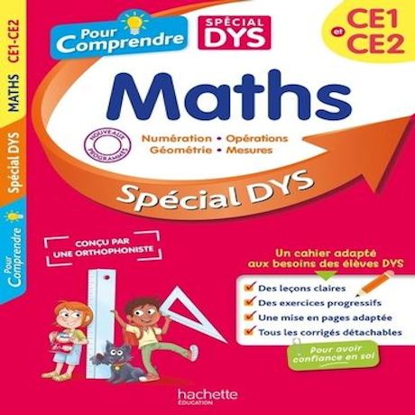 Ce cahier, conçu par une orthophoniste et des enseignants expérimentés, propose une pédagogie spécialement adaptée pour aider les élèves DYS et en difficultés d'apprentissage tout au long de l'année. Vous retrouverez tout le programme de mathématiques, avec : 34 leçons claires et illustrées de nombreux exemples , une mise en pages aménagée (police de caractères ajustée et davantage d'espace entre les mots et les lettres) , un exercice corrigé pas à pas, ainsi que des exercices de difficulté progressive , des conseils destinés à l'adulte , - un exercice-bilan pour que l'enfant évalue lui-même ses progrès.
