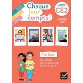 Le fichier CE2 de la collection de maths Chaque jour compte, une méthode structurante et spiralaire fondée sur la ritualisation des apprentissages et l'enseignement explicite qui intègre la résolution de problèmes et la manipulation. - Le fichier Nombres, calculs, grandeurs et mesures, espace et géométrie suit un champ numérique plus vaste avec l'introduction de grands nombres : jusqu'à 3 199 en P1, jusqu'à 10 000 en P2. - Après la séance collective menée à l'aide des diaporamas, les élèves s'entrainent sur le fichier. Les consignes y sont simples et les pages sans distracteurs. - Une mise en oeuvre facilitée des nouveaux programmes : - une progression en calcul mental pensée pour renforcer le travail sur les procédures et permettre la mémorisation des faits numériques - des séances clés en main pour un apprentissage structuré des fractions et des décimaux LES + : - La police interlettrée favorise l'appropriation des outils par les élèves à besoins particuliers - La différenciation est facilitée avec les exercices des champions, avec des nombres plus élevés INCLUS : - 4 plasti-fiches évolutives et le matériel détachable clé en main (dont des bandes de manipulation et des supports partagés en aires différentes pour le travail des fractions) Profitez de nombreuses informations et ressources gratuites sur la page collection : editions-hatier. fr/collection/maths-chaque-jour-compte-ce2