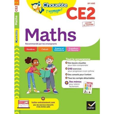 Voici ce que tu trouveras dans ton cahier Maths CE2 : les leçons à savoir , 240 exercices progressifs , des conseils pour bien retenir , un test initial et un bilan final , les corrigés dans un livret détachable , + des mémos pour apprendre facilement , + exercices interactifs sur www.hatier-entrain