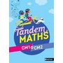 Un manuel double niveau CM1 et CM2 pour mettre en oeuvre la méthode Tandem : une méthode innovante qui facilite la vie des enseignants en double niveau ! Un manuel + 95 cartes missions au format numérique à télécharger pour vidéoprojeter ou imprimer Un manuel double niveau CM1 et CM2 pour entrer dans les notions, s'entrainer en autonomie et faire le bilan : - 15 modules d'apprentissage pour aborder toutes les notions en numération, grandeurs et mesures, géométrie. Chaque module s'ouvre sur un questionnement simple, pour ancrer les mathématiques dans le réel. - Une partie dédiée au calcul pour s'entrainer et avancer à son rythme en calcul mental, calcul en ligne et calcul posé. - Une partie pour apprendre à chercher , grâce à la modélisation, basée sur la typologie de Vergnaud. + des cartes missions dans chaque niveau pour manipuler et découvrir les notions ! + des cahiers CM1 et CM2 pour l'élève en complément de l'entrainement dans le manuel. La collection Tandem c'est : Une méthode qui alterne des temps d'apprentissage distincts et des temps de coopération communs aux CM1 et CM2. Des activités de manipulation motivantes grâce aux cartes missions au format numérique ou papier. Une découverte des mathématiques ancrée dans le réel . Des auteurs de terrain, CPC, maitres formateurs, enseignants double niveau, professeur de collège... Feuilletez un extrait du fichier ressources : https : //www. calameo. com/read/00535833566d0c0c9ea23 Découvrez toute la collection : https : //www. calameo. com/read/005358335d41642cc6d04