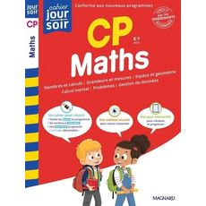 Un cahier complet pour progresser en maths au CP Tout le programme de maths CP pour réviser et progresser ! Cahier Jour Soir : une collection conçue et recommandée par les enseignants. - Une structure simple et claire pour progresser en maths : - Les leçons pour réviser tout le programme : nombres et calculs, calcul mental, problèmes, grandeurs et mesures, espace et géométrie, organisation et gestion de données - Toutes les règles et de nombreux exemples pour bien comprendre - Des exercices progressifs pour s'entraîner tout au long de l'année - Le + accessible par un QR code : - des mémos visuels : des schémas et cartes mentales avec l'essentiel à retenir, pour une mémorisation visuelle efficace - des quiz numériques interactifs, sur toutes les notions du programme, pour s'évaluer et progresser de manière ludique - Le + pour les parents : un cahier central détachable avec tous les corrigés. : un cahier central détachable avec tous les corrigés.