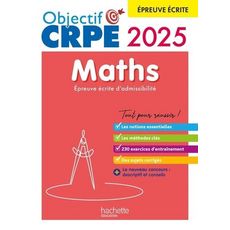 Tout pour préparer et réussir le CRPE ! Conçu pour les étudiants en Master MEEF, les candidats libres et en formation privée, cet ouvrage propose une préparation complète et efficace à l'épreuve d'admissibilité de Maths du CRPE : Le descriptif du nouveau concours et de l'épreuve de Maths enrichi de conseils15 chapitres pour réviser tout le programmeUne structure progressive dans chaque chapitre : rappels de cours accompagnés de nombreux exemples , les méthodes essentielles expliquées sous la forme d'exercices modèles corrigés et commentés , QCM d'auto-évaluation , des exercices d'échauffement suivis d'exercices du concours et de leurs corrigésDes annales corrigéesDes tutos pratiques sur les applications à connaître : Scratch, tableur, calculatrices, logiciel de géométrie dynamique OFFERT ! Un guide d'accompagnement pour optimiser votre préparation et mettre toutes les chances de votre côté