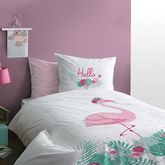 Parure housse de couette enfant en coton 57 fils réversible zig zig ou flamand rose