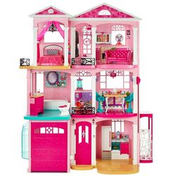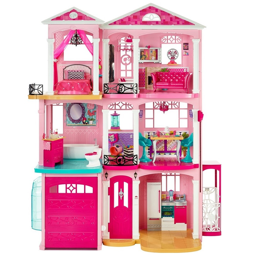 Cette magnifique maison de rêve Barbie à trois étages et sept pièces dispose d'un ascenseur, de plusieurs chambres, un garage, une salle à manger, une salle de bain, une piscine et de nombreux accessoires et mobiliers pour la maison.