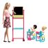 Dring ! C'est l'heure de l'école. La maîtresse Barbie fait classe devant les élèves assis à leurs bureaux. Barbie montre les exercice sur son tableau noir, au programme : mathématiques et français !