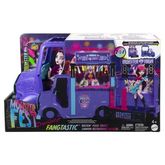 Le bus est équipé d'une fonction de transformation unique, se convertissant en une scène de concert avec un système de tirage. Il est accompagné de plus de 13 accessoires liés à la musique et à la nourriture, permettant aux enfants de jouer de manière créative. La poupée Draculaura est vêtue d'une robe rose et d'une couronne de fleurs, prête à animer le Monster Fest, le festival de musique le plus électrisant de l'année.