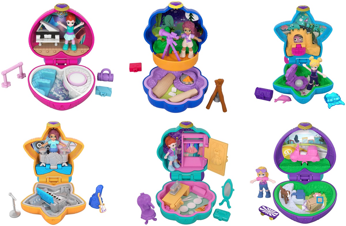 Mini-coffrets avec anneau à accrocher et emporter partout. Retrouvez Polly ou ses amies dans différents univers miniatures avec un anneau pour l'accrocher facilement à son sac ou à sa trousse.