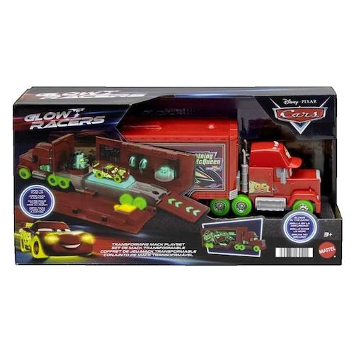 Le Coffret Cars Mack Transformable de Disney/Pixar par Mattel est un ensemble de jeu interactif idéal pour les enfants dès 3 ans. Il comprend des bolides lumineux et une remorque dépliante qui s'ouvre en un atelier de tuning, permettant de recréer des scènes de course amusantes et créatives. Fabriqu