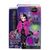La poupée articulée porte une longue veste fuchsia en acrylique sauvage qui recouvre un top et un legging noirs. 8 accessoires et 1 animal sont inclus.