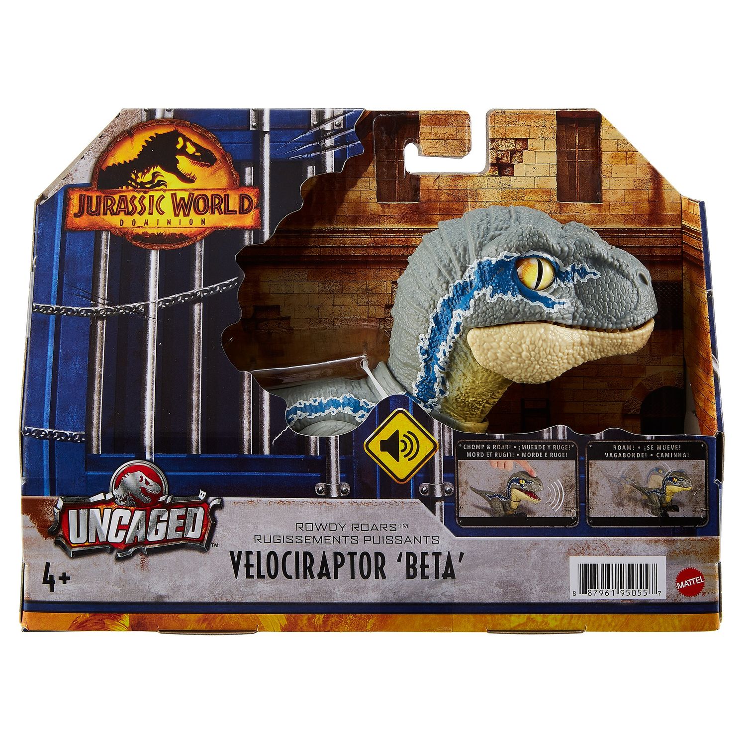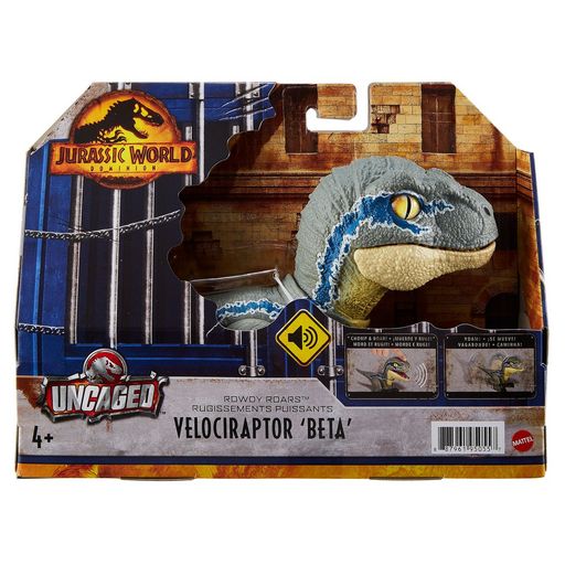 Découvrez la figurine interactive Velociraptor Beta de Mattel, inspirée du film Jurassic World Dominion . Cette figurine réaliste de 18 cm, avec un corps gris orné de bandes bleues, un ventre crème et des yeux jaunes perçants, offre des moments passionnants aux enfants. Elle réagit au toucher, cr