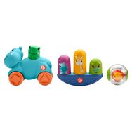 Il est fourni avec des conseils d’experts en développement de l’enfant du Fisher-Price Play Lab. Dans ce coffret il y a meme 1 boule-hochet lion à secouer, faire rouler ou suivre à 4 pattes, 1 hippopotame à roulettes qui avance quand on appuie sur son dos, 1 jouet culbuto en forme de balançoire sur lequel empiler 3 gobelets animaux.