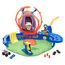 -L’arène en forme d’île volcanique comprend 2 lanceurs et plusieurs zones pour réaliser des crashs, des collisions et des cascades.