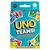 [Cet avis a été recueilli en réponse à une offre.] Avec Uno Teams, l'union fait la force! Et oui, avec cette nouvelle version, on joue avec un partenaire. J'adore déjà la version classique, mais avec celui ci je dois avouer que cela apporte une autre dimension à ce jeu mythique! De 2 à 4 joueurs, un jeu de cartes pour toute la famille, tout le monde s'amuse! Son format ne prend pas de place donc parfait pour l'emmener partout. Emballage en papier recyclé parfait pour la planète!