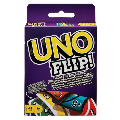 Découvrez la nouvelle version du traditionnel UNO : UNO FLIP ! Dans cette variante, le jeu de cartes que vous connaissez bien a de nouvelles particularités, telles que des cartes à jouer recto verso et une carte Action « Retourner », pour des parties encore plus délirantes. Chacun leur tour, les joueurs associent une de leurs cartes avec la couleur ou le chiffre de la carte retournée en haut de la pile. Pour se débarrasser au plus vite de leurs cartes, ils peuvent jouer des cartes Action pour ralentir leurs adversaires, comme les cartes Passer, Inversion et Joker Changement de couleur. UNO FLIP ! inclut également de nouvelles cartes Action qui viennent pimenter le jeu, notamment les cartes +5 et Tout Le Monde Passe Son Tour. Lorsqu'un joueur pose la carte Action Retourner, il retourne toutes les cartes de sa main, de la pioche et de la pile pour révéler de nouveaux chiffres et de nouvelles couleurs au verso ! La personne qui a posé la carte Retourner peut alors choisir de jouer côté « blanc » ou côté « noir » et peut remettre le jeu dans le sens initial dès qu'elle le souhaite. Mettez au point une stratégie pour contrecarrer les plans de vos adversaires et soyez le premier à vous débarrasser de toutes vos cartes pour remporter la victoire. Quand il ne vous reste plus qu'une carte, n'oubliez pas de crier « UNO » ! Les couleurs et les décorations peuvent varier.