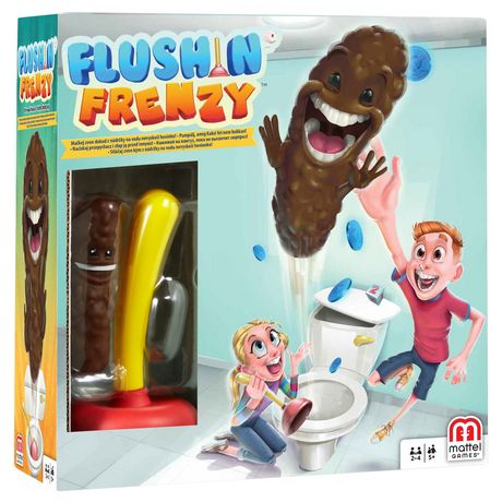 Tirez la chasse d’eau pour lancer le dé, plongez la ventouse dans les toilettes le nombre de fois indiqué par le dé. Mais attention, chaque coup de ventouse augmente les chances de voir une crotte SURGIR des toilettes à toute vitesse ! Le premier joueur à attraper la crotte remporte un jeton. Et si vous arrivez à l’attraper en plein vol, vous gagnez 2 jetons ! Le joueur qui a le plus de jetons a gagné.