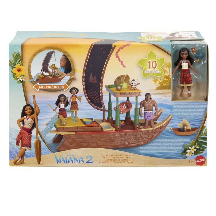 La pirogue se transforme et dévoile des espaces de jeu ! + de 15 accessoires, 1 mini poupée mannequin et 1 petit animal sont inclus pour recréer l’aventure.
