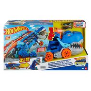 Ce T-Rex, à la fois effrayant et amusant, peut se tenir debout sur ses pattes pour ressembler à un authentique dinosaure, puis se transformer en une piste de course sur laquelle les enfants peuvent faire concourir les petites voitures incluses dans le coffret. Il peut également se basculer pour devenir un camion unique en son genre, capable d'avaler, de stocker et de propulser les petites voitures Hot Wheels !