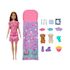 Barbie Soirée Pyjama est un coffret de jeu complet comprenant une poupée Barbie, deux chiots avec effet de changement de couleur, un sac de couchage, un masque pour les yeux et plus de 10 accessoires. Ce jouet est idéal pour les enfants dès 3 ans qui aiment les poupées et les animaux. La poupée porte une chemise de nuit et des pantoufles. Les chiots inclus apportent une touche ludique grâce à leur changement de couleur. Ce produit ne peut pas tenir debout seul. Un cadeau parfait pour des moments de jeu imaginatifs et amusants.