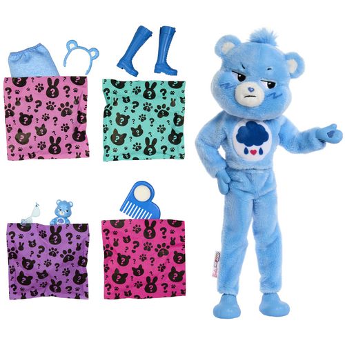 10 surprises sont à découvrir ! 1 Barbie articulée, 1 changement de couleur, 1 déguisement 2 en 1 du Bisounours, 1 mini Touronchon et 5 accessoires.