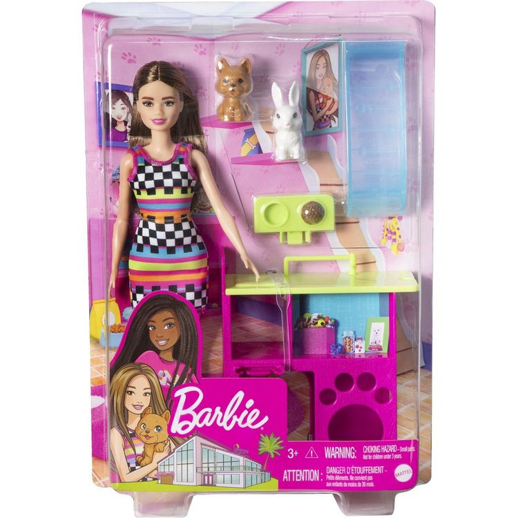 Découvrez la poupée Barbie multicolore accompagnée de ses deux animaux de compagnie : un chiot et un lapin. Cette poupée articulée est fabriquée en plastique et tissu durable et habillée d'une élégante robe. La maison colorée et ludique inclut un toboggan pour stimuler des jeux imaginatifs et créatifs. Convient aux enfants à partir de 3 ans, conforme aux normes de sécurité, c'est un cadeau parfait pour les jeunes aventuriers.