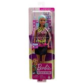 La poupée mannequin Barbie maquilleuse artistique est prete a sublimer sa clientele avec sa trousse de maquillage imprimée et les accessoires inclus. Elle porte une robe avec haut a imprimé léopard, jupe noire et chaussures roses. Les accessoires tiennent dans la main de la poupée grâce a un systeme de fixation pour plus de réalisme.