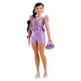 Découvrez la poupée Barbie Deluxe Style JFP43 de Mattel, une poupée de mode incontournable pour les enfants dès 3 ans. Cette poupée élégante est vêtue d'un haut à volants violet métallique et d'un short scintillant. Elle est accessoirisée avec une barrette, des boucles d'oreilles, un collier et un s