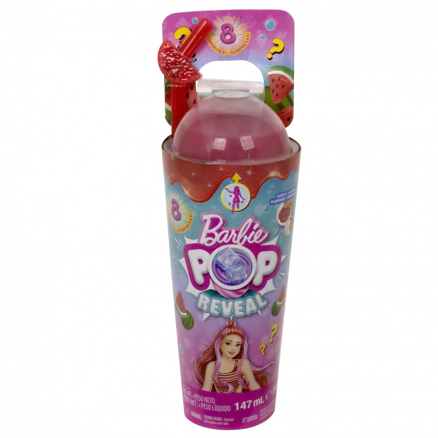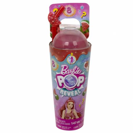 Les enfants retirer le couvercle du gobelet pour y découvrir les sachets surprises, puis referme le couvercle pour le percer à l'aide de la paille, laissant ainsi le slime gluant et rouge s'écouler sur les glaçons. À l'intérieur, ils y trouveront une poupée Barbie articulée parfum cocktail à la pastèque, un chiot mou parfumé et des accessoires assortis au thème des fruits !