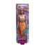 Poupée Barbie sirène avec des cheveux roses, une nageoire orangé et un bandeau.