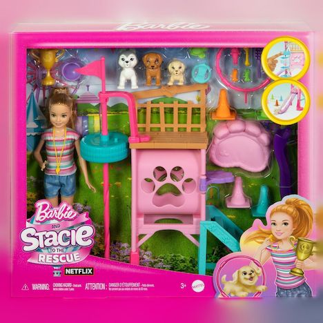 Ce set de jeu captivant Barbie comprend la poupée Stacie ainsi que trois chiots adorables, parfaits pour les enfants dès 3 ans. Il offre plus de 20 accessoires pour stimuler la créativité et l'imagination des enfants à travers une aire de jeu personnalisable avec une tour tournante, un toboggan et d