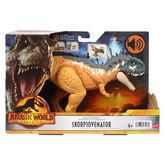 Découvrez la figurine Skorpiovenator de Jurassic World par Mattel, un jouet captivant destiné aux enfants dès 4 ans. Cette figurine en plastique de haute qualité mesure 26 cm de long et 17 cm de haut. Elle est équipée de 3 piles AG13/LR44 incluses, permettant des effets sonores réalistes activés par