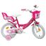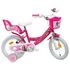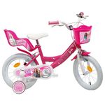 Vélo 14 Fille Licence Barbie pour enfant de 95/110 cm - Cadre Acier surbaissé pour enjambement aisé - Direction et pédalier en nylon - Roue libre monovitesse - Freins avant et arrière Calliper - Selle réglable - Carter de chaîne intégral - Gardes boue et poignées spécifiques pour augmenter la protection de l'enfant - Jantes à rayons - Pneus gonflables blancs - Stabilisateurs (montage sans outil) - Panier avant - Porte-poupée arrière - Avertisseur sonore - Eclairage à piles fournies - Catadioptres de roues