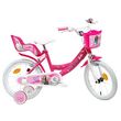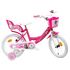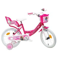 Vélo 16 Fille Licence Barbie pour enfant de 105/120 cm - Cadre Acier surbaissé pour enjambement aisé - Direction et pédalier en nylon - Roue libre monovitesse - Freins avant et arrière Calliper - Selle réglable - Carter de chaîne intégral - Gardes boue et poignées spécifiques pour augmenter la protection de l'enfant - Jantes à rayons - Pneus gonflables blancs - Stabilisateurs (montage sans outil) - Panier avant - Porte-poupée arrière - Avertisseur sonore - Eclairage à piles fournies - Catadioptres de roues