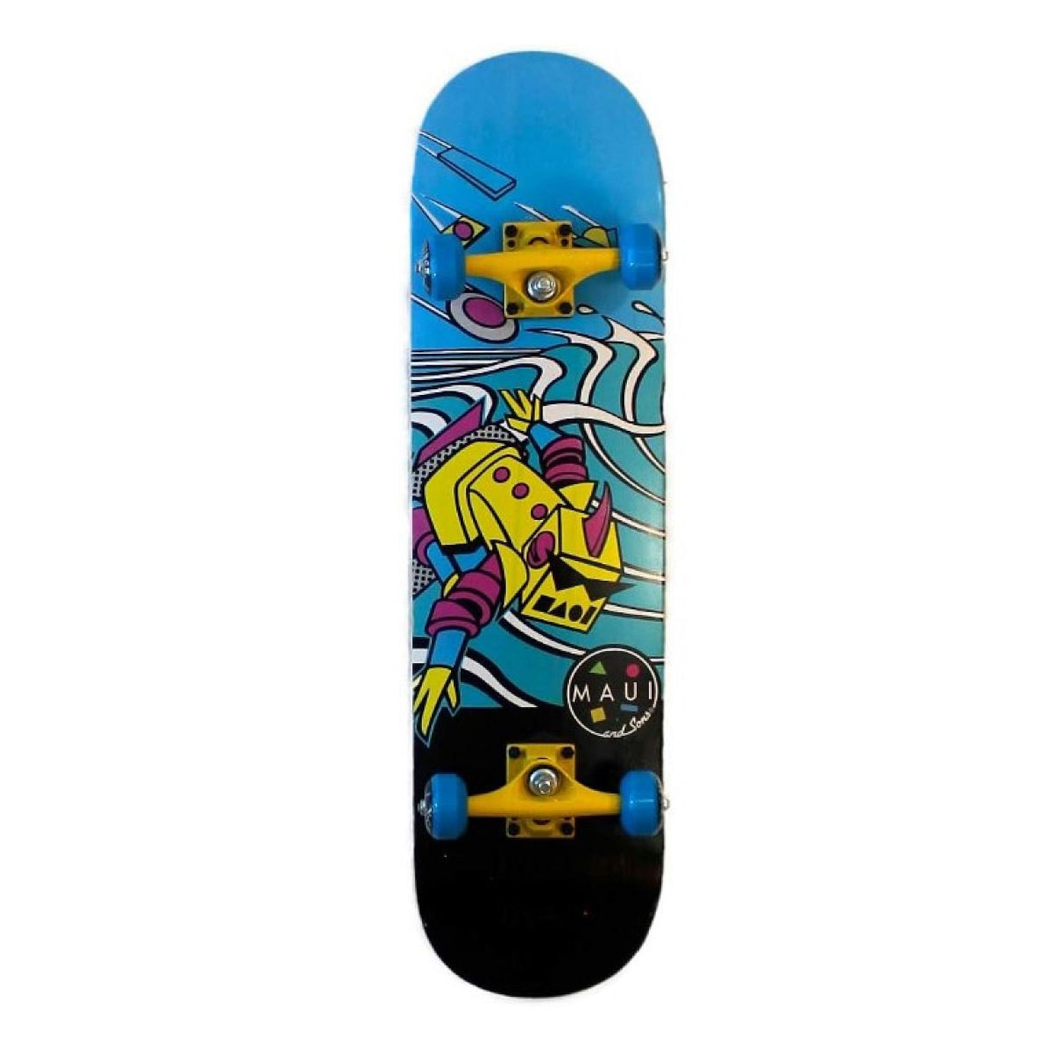 Contient : MAUI et SONS - SKATEBOARD 31 POUCES - Invasion Planche à roulettes professionnelle robuste Cette planche à roulettes double concave de 31 x 8 x 11 mm est fabriquée à partir de deux couches de bois d'érable canadien dans lesquelles les deux couleurs centrales sont teintes