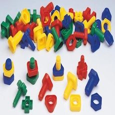 Maxiboulons est un matériel de vissage et de tri en plastique composé de 32 écrous et 32 vis de grandes tailles : 4 formes, 4 couleurs et 4 diamètres. 64 pièces (32 écrous et 32 vis) de grande taille en plastique rigide. 4 formes, 4 couleurs et 4 diamètres différents.Auteur : Nathan matériel éducati