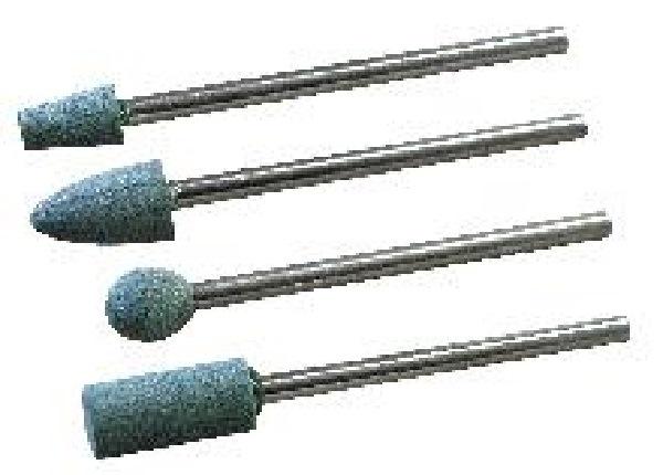 2 meules au carbure de silicium. Forme : sphérique, diamètre x hauteur : 4,5 mm.Idéales pour graver et dépolir les matériaux comme le verre, la céramique, la fibre de verre, le métal tendre.Tige Ø, 2,35 mm.