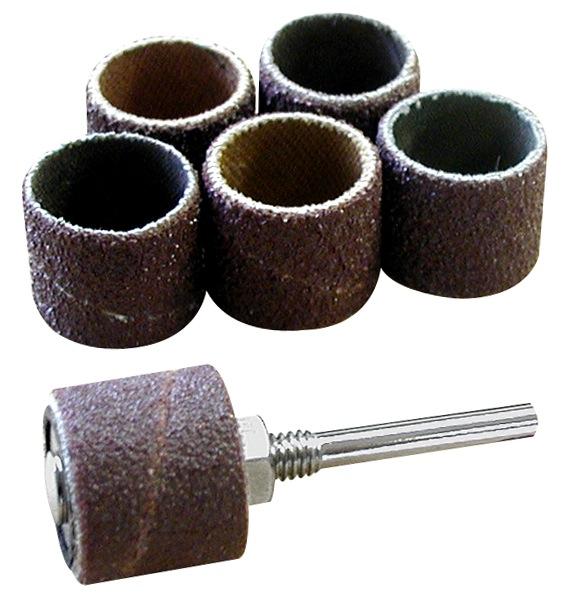 6 tambours abrasifs haute qualité Ø 15 mm + support