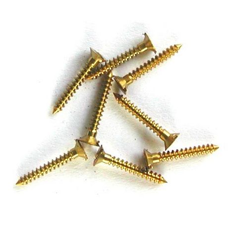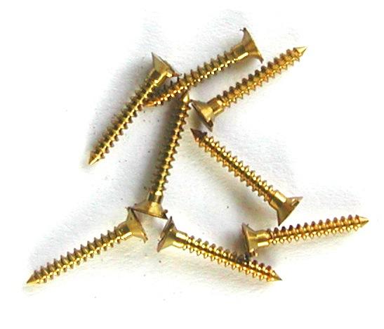 Vis à bois, en laiton avec têtes fraisées. Diamètre : 1,5 mm, longueur : 10 mm, quantité : 8 pièces.