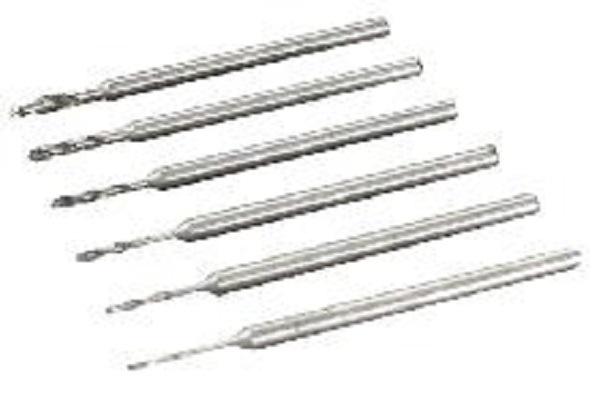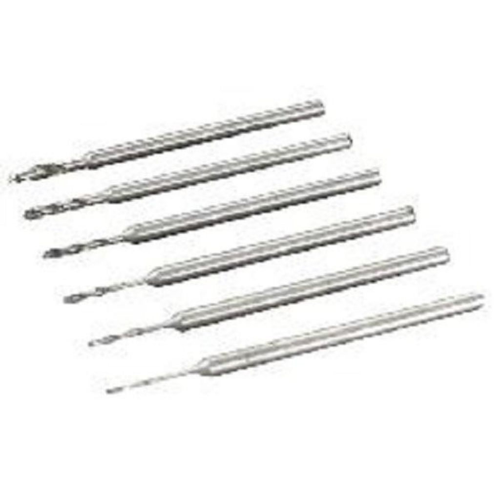 6 forêts HSS hélicoidaux. Diamètres : 0,3 / 0,5 / 0,8 / 1,0 / 1,2 / 1,5 / 1,8 / 2,5 / 3,0 mm.Pour le perçage des métaux, des pierres précieuses, des matières plastiques,du bois...Forets avec queue épaulée : le diamètre de la partie coupante est la dimension nominale et la partie pincée par le mandri