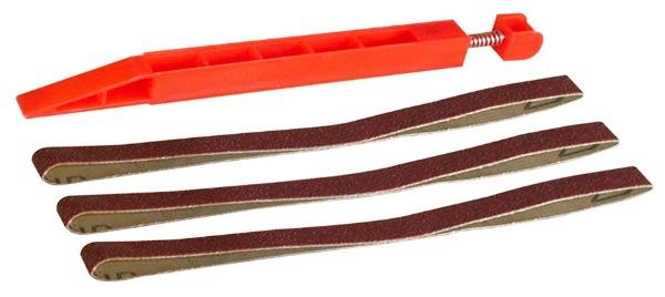 Fine et pointue.Avec tension automatique de la bande. Dimensions : 200 x 12 mm.Livrée avec trois bandes.
