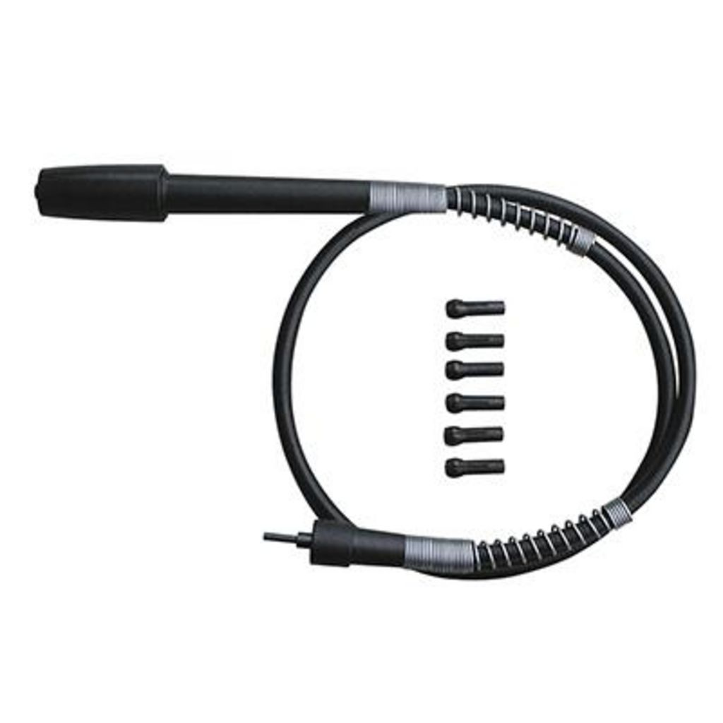 Flexible. Idéal pour les travaux de précision et difficiles d&rsquo,accès. Bonne ergonomie grâce à la main gantée qui permet de tenir le flexible au plus près de l&rsquo,outil en rotation pour avoir plus de précision sans risque de blessure. Livré avec 6 pinces en acier.